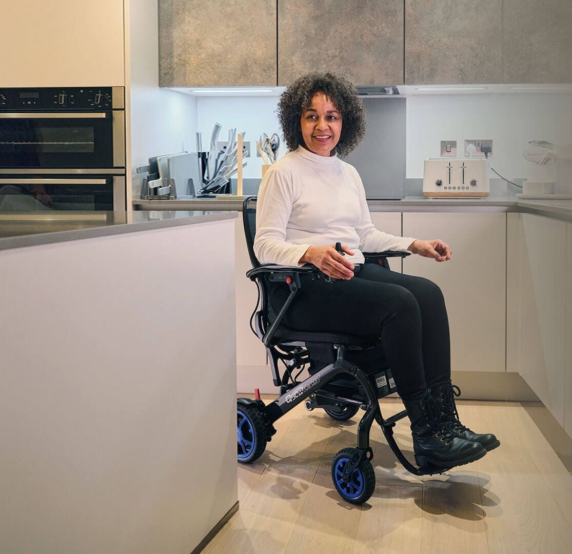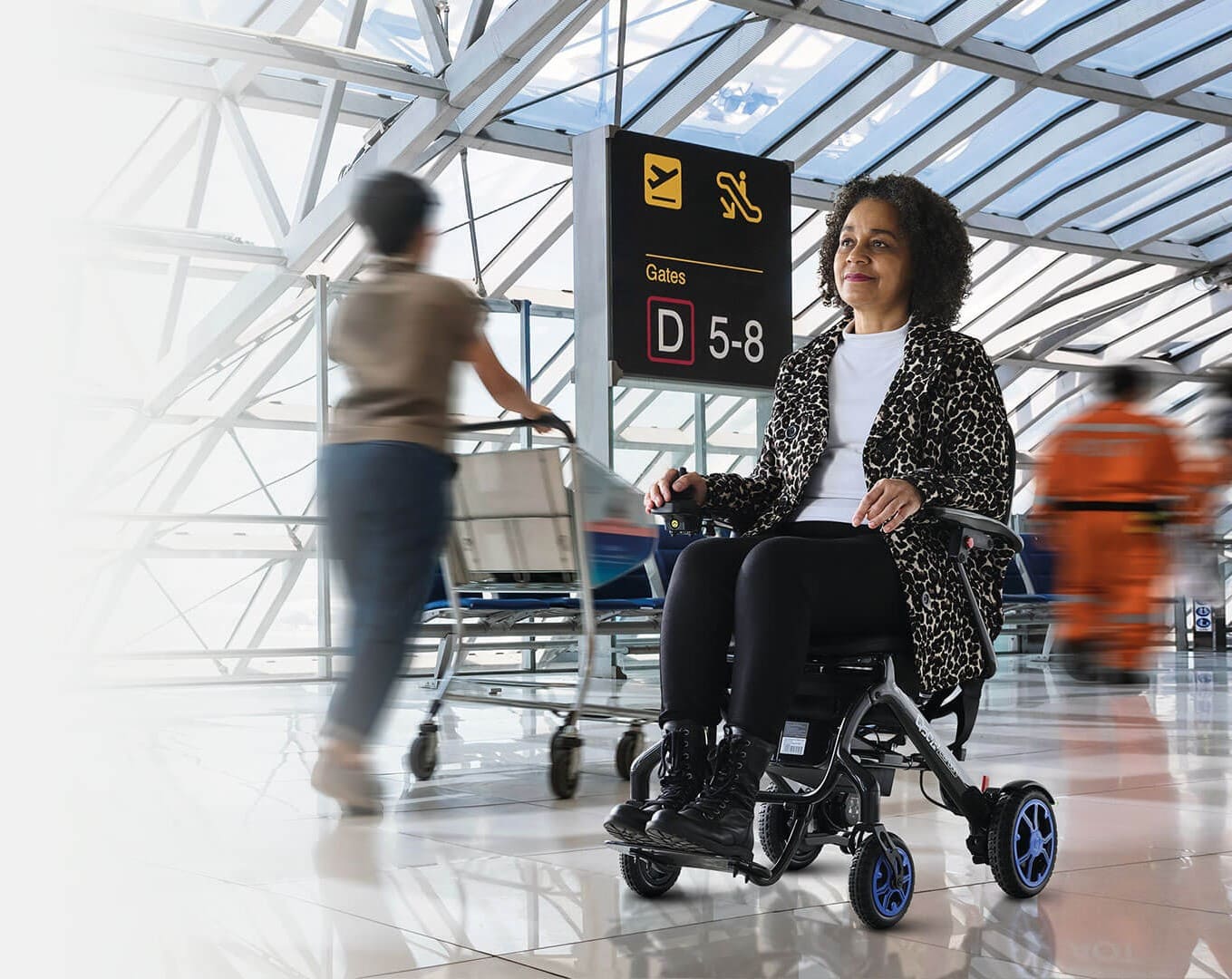 Será seduzido pela sua inegável elegância. A sua armação em carbono está desenhada para enfrentar de maneira natural as superfícies irregulares. E se está a planear fazer uma viagem de avião, pode levar a cadeira consigo, pois a sua bateria de iões de lítio está homologada pela IATA (Associação Internacional de Transporte Aéreo) para o transporte em avião.