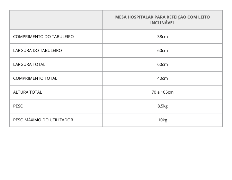 Mesa Hospitalar para Refeição com Leito Inclinável